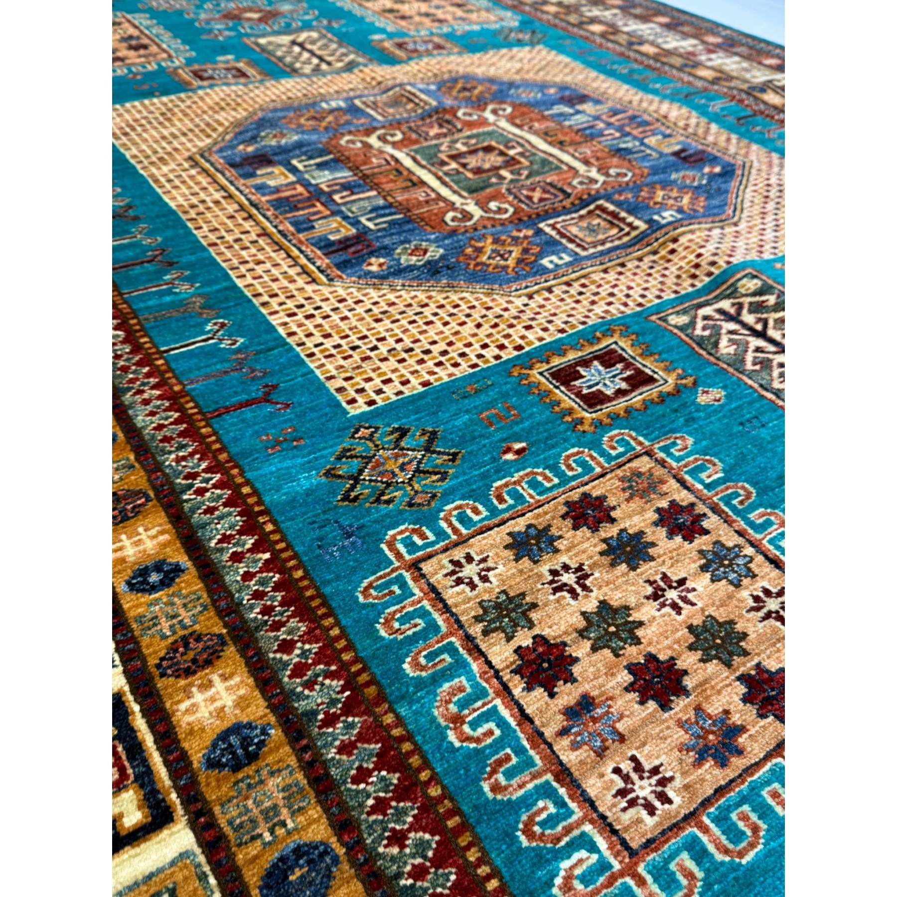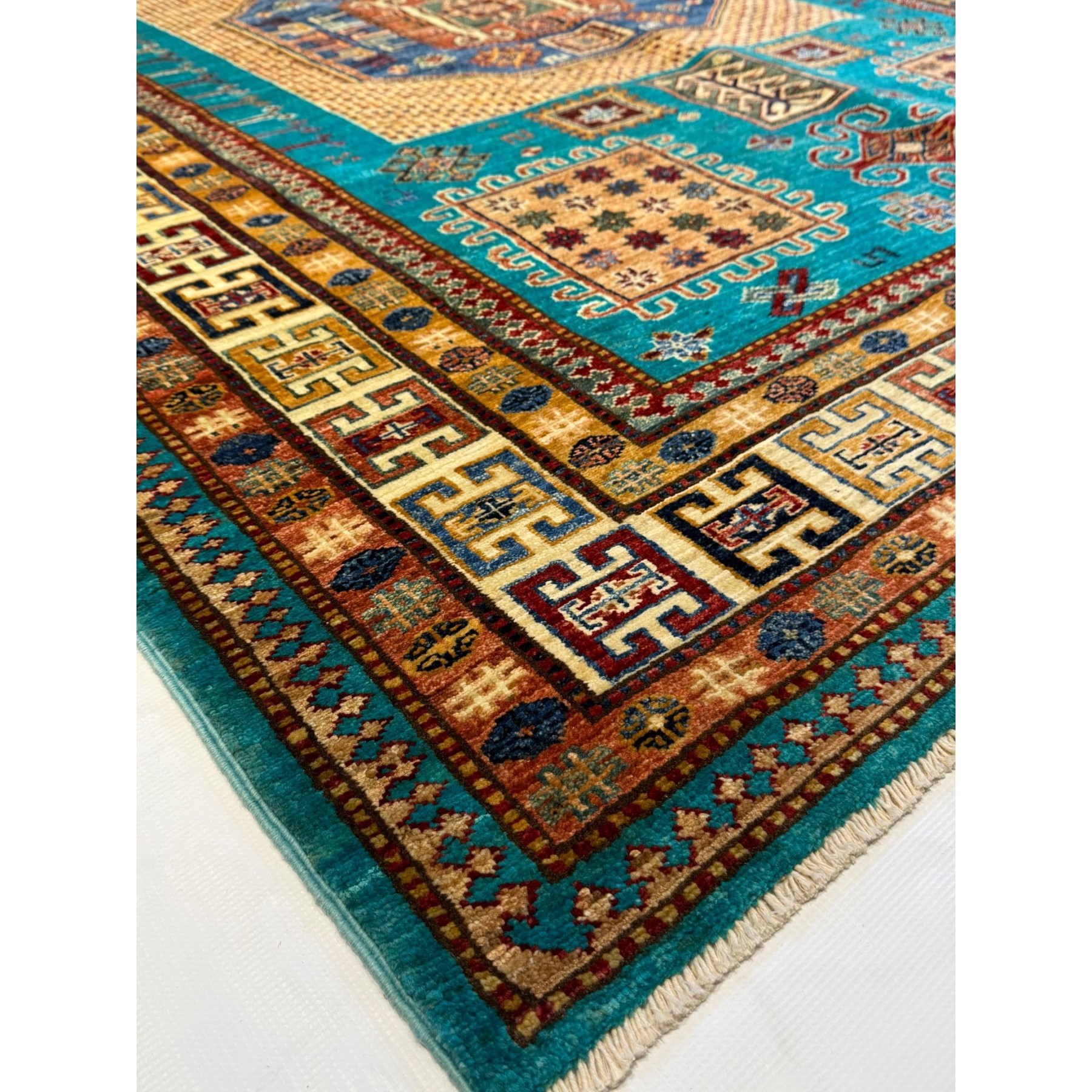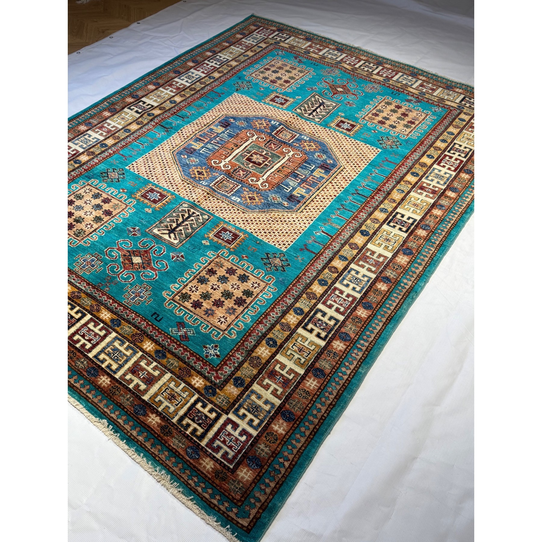 Dywan Pakistański Kazak to przykład tradycji i kunsztu tkackiego, który od pokoleń zachwyca bogactwem kolorów i wzorów. Tkany całkowicie ręcznie z naturalnej, ręcznie skręcanej przędzy wełnianej, wyróżnia się niezwykłą trwałością i przepięknym połyskiem. Każdy detal, od geometrycznych ornamentów po intensywne barwy, sprawia, że ten dywan staje się prawdziwym dziełem sztuki użytkowej. Idealny zarówno do klasycznych, jak i nowoczesnych wnętrz – wnosi elegancję, ciepło i charakter. To inwestycja na lata, która z czasem zyskuje na wartości.