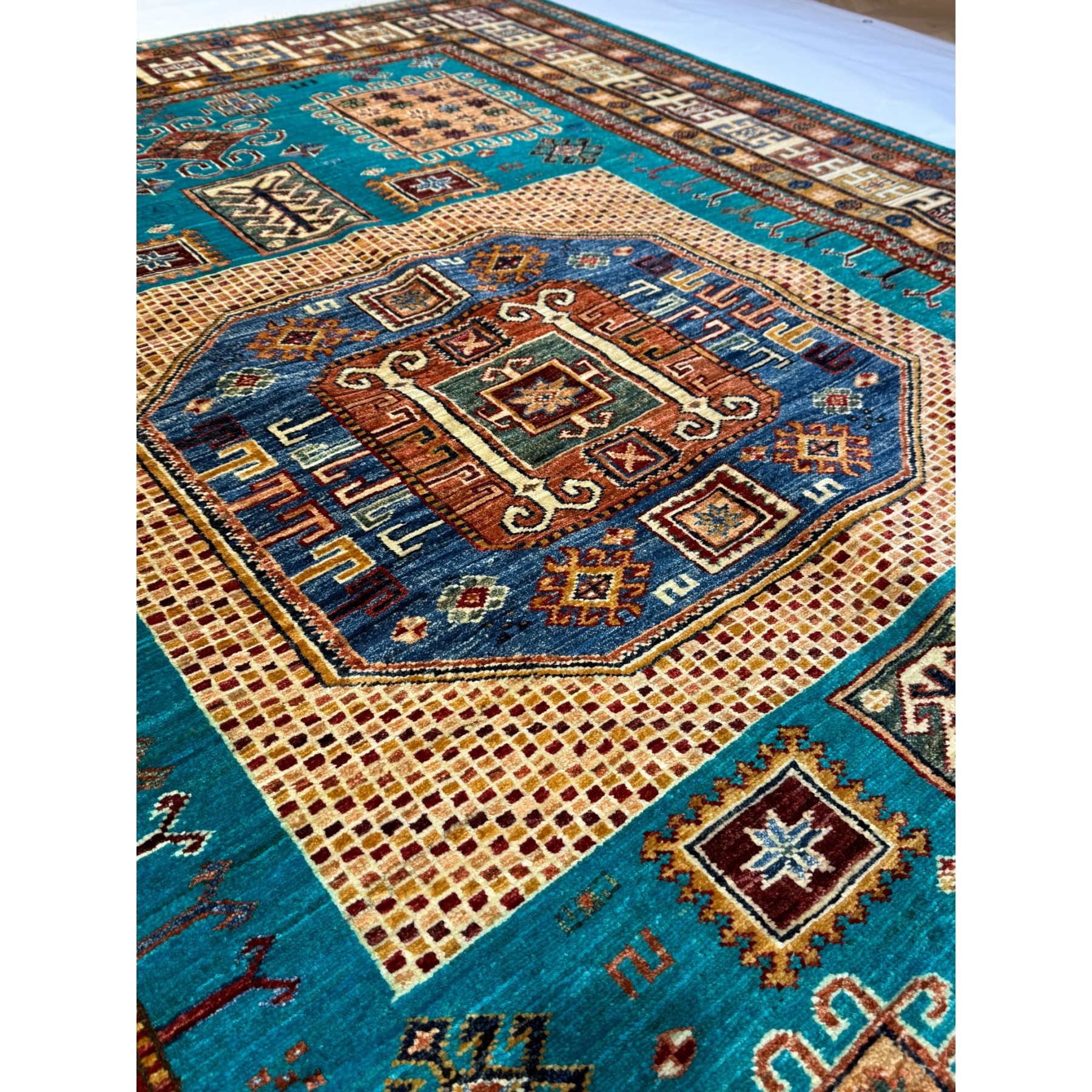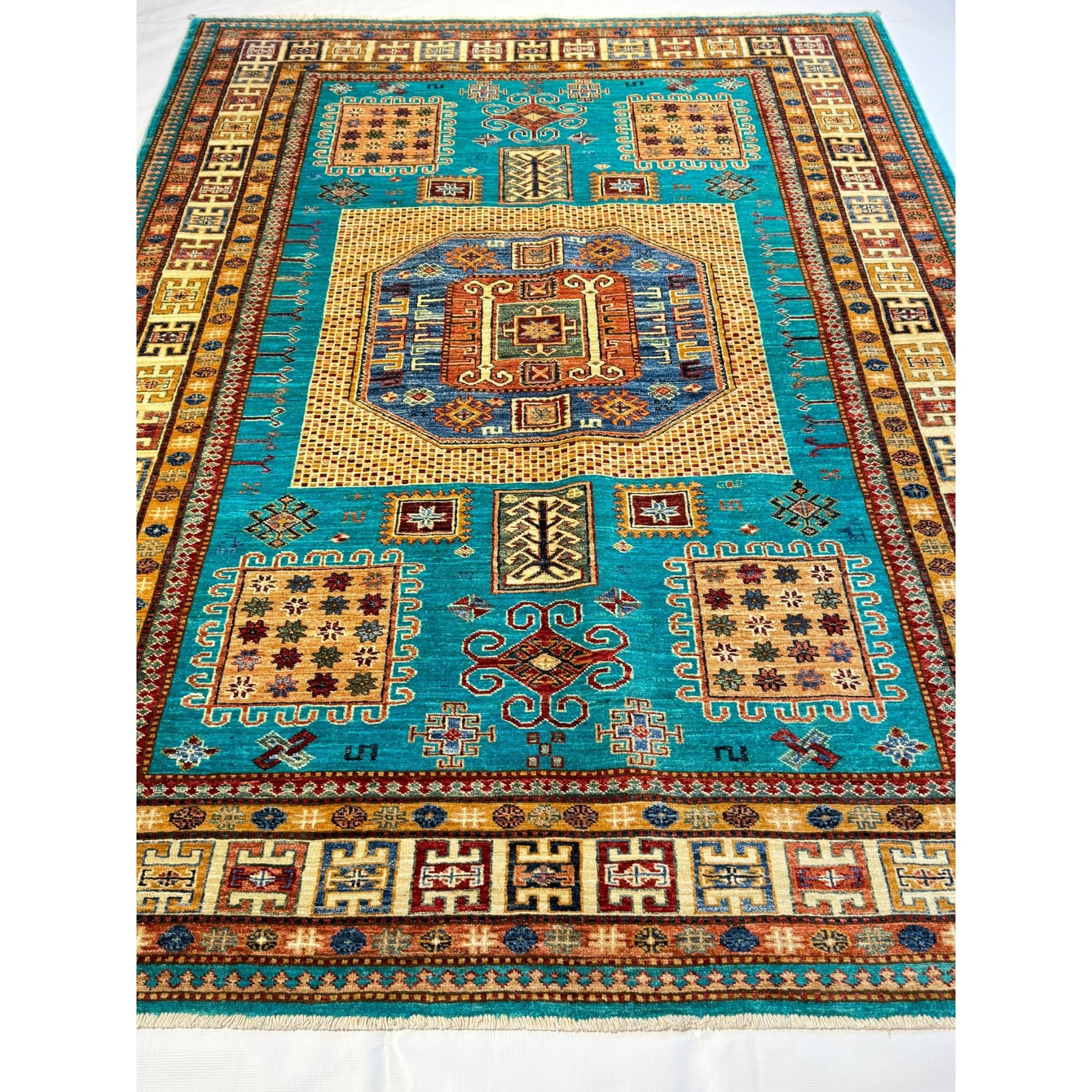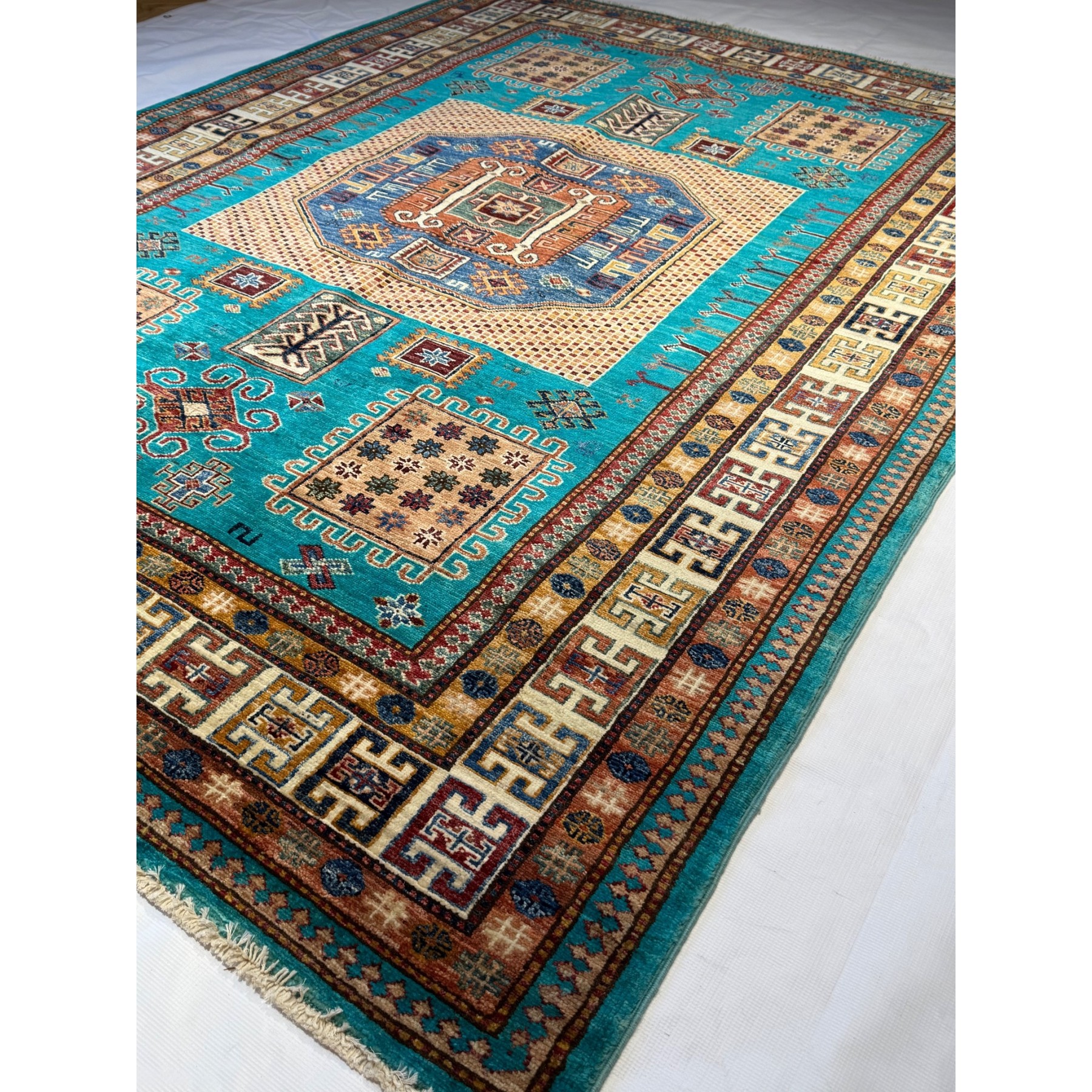 Dywan Pakistański Kazak to przykład tradycji i kunsztu tkackiego, który od pokoleń zachwyca bogactwem kolorów i wzorów. Tkany całkowicie ręcznie z naturalnej, ręcznie skręcanej przędzy wełnianej, wyróżnia się niezwykłą trwałością i przepięknym połyskiem. Każdy detal, od geometrycznych ornamentów po intensywne barwy, sprawia, że ten dywan staje się prawdziwym dziełem sztuki użytkowej. Idealny zarówno do klasycznych, jak i nowoczesnych wnętrz – wnosi elegancję, ciepło i charakter. To inwestycja na lata, która z czasem zyskuje na wartości.
