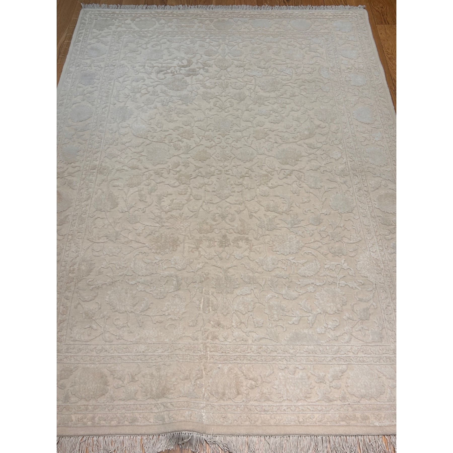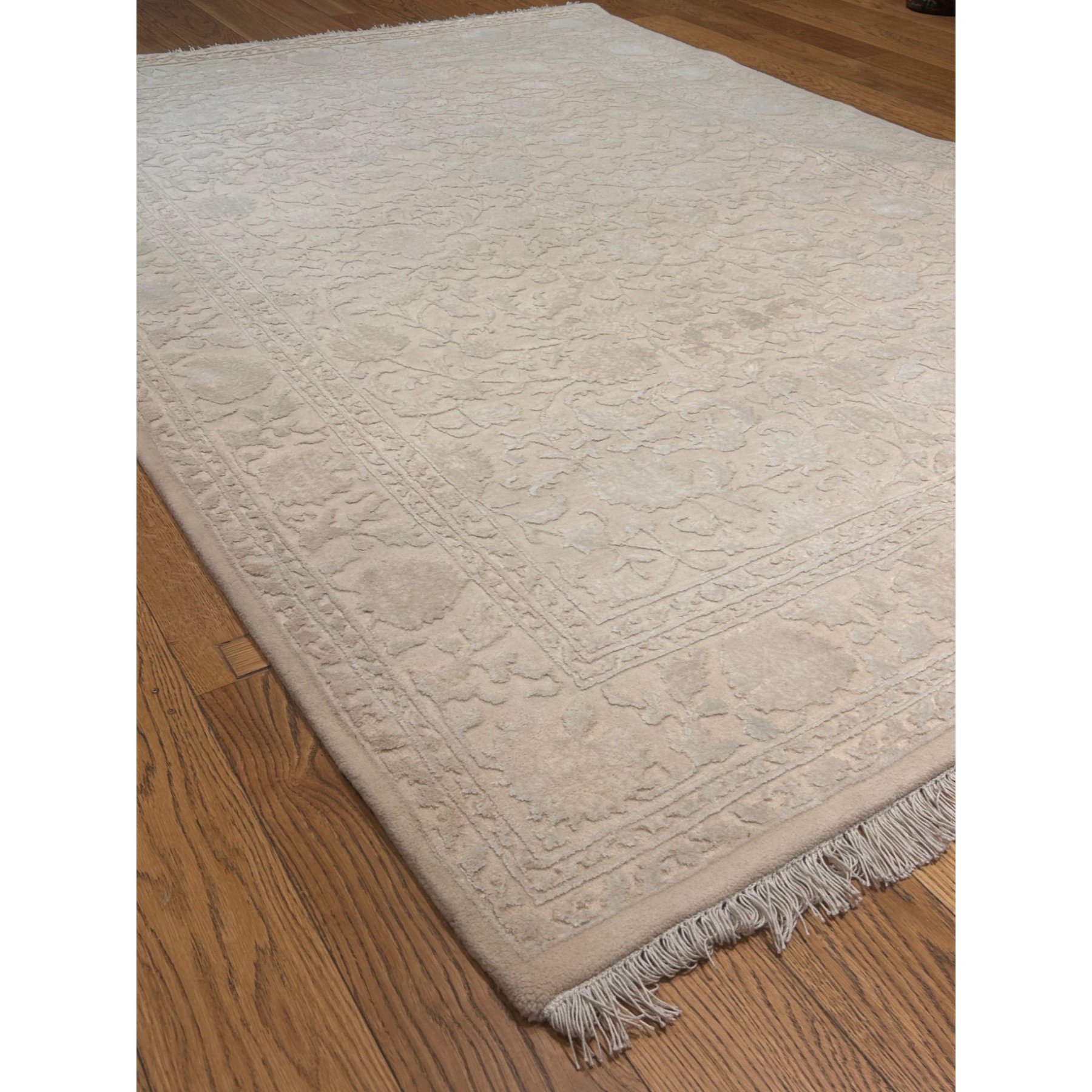 Dywan indyjski Royal Magic to kwintesencja elegancji i luksusu. Ręcznie tkany z najlepszej wełny z dodatkiem jedwabiu, zachwyca subtelnym połyskiem i delikatnym reliefowym wzorem. Jasna kolorystyka sprawia, że doskonale rozświetla wnętrze, nadając mu lekkości i harmonii. To ponadczasowy wybór dla osób, które cenią luksusowe materiały, kunszt rzemiosła i spokojne piękno. Royal Magic nie jest jedynie dywanem – to artystyczna ozdoba domu, która wnosi wyrafinowanie i wyjątkowy klimat.